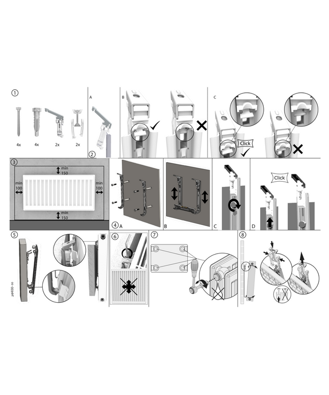 Belrad BELRAD bevestigingsset badkamer radiator – 4 stuks – Wit