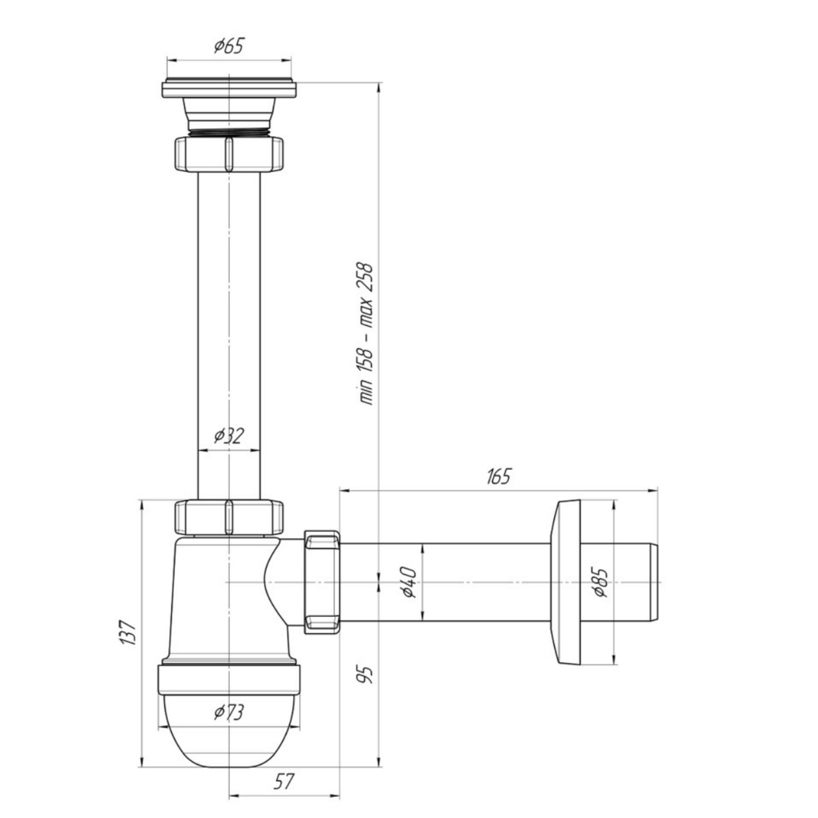ALONI bekersifon met afvoerrooster – Ø40 mm – Chroom