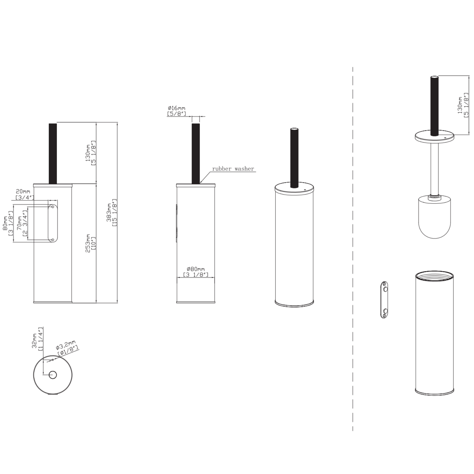 Aloni Stria toiletborstel met houder – gunmetal (PVD) – hangend & vrijstaand – met kunststof binnenpot