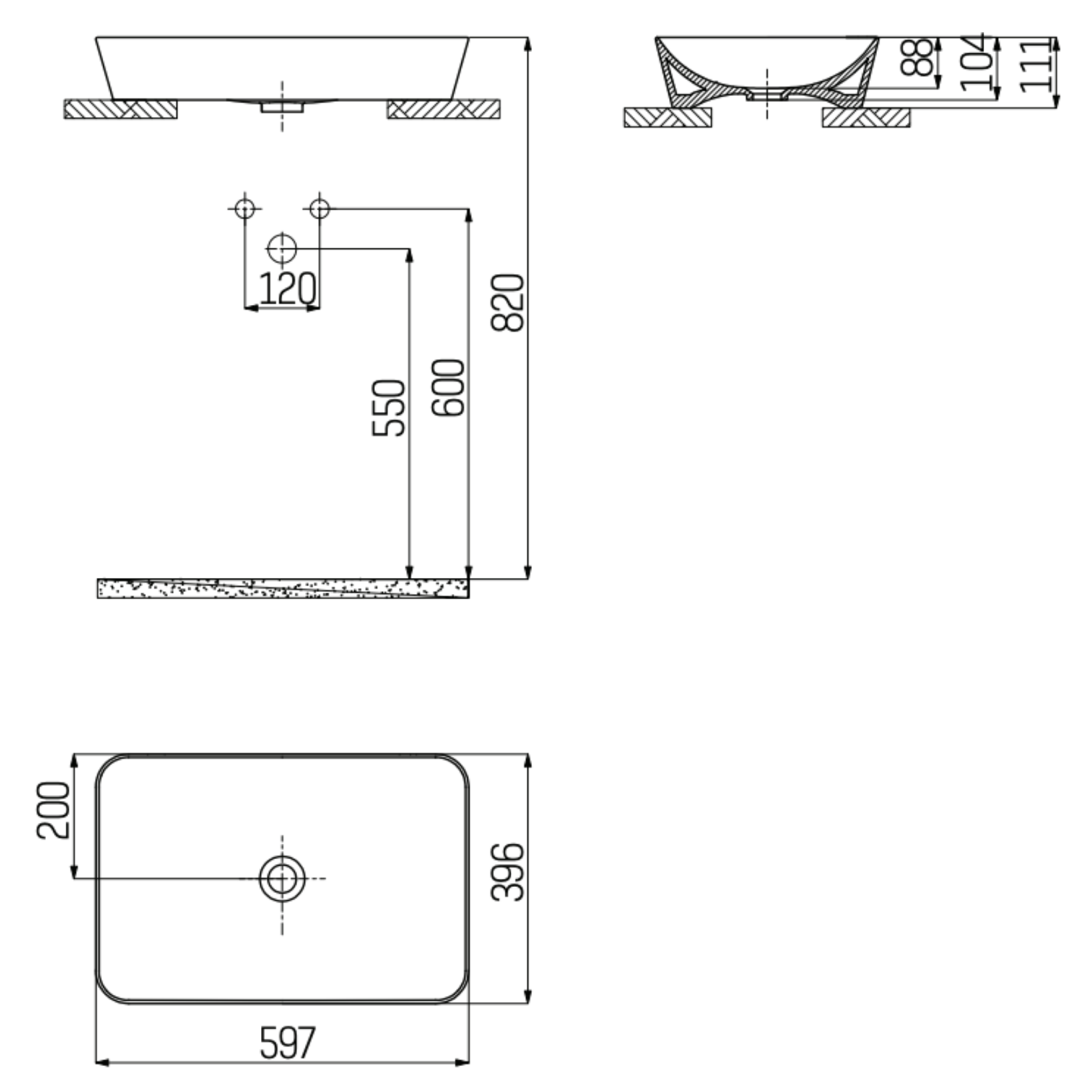 Creavit Ultra Keramische Opbouw Wastafel – 60x40 cm – Glanzend Wit