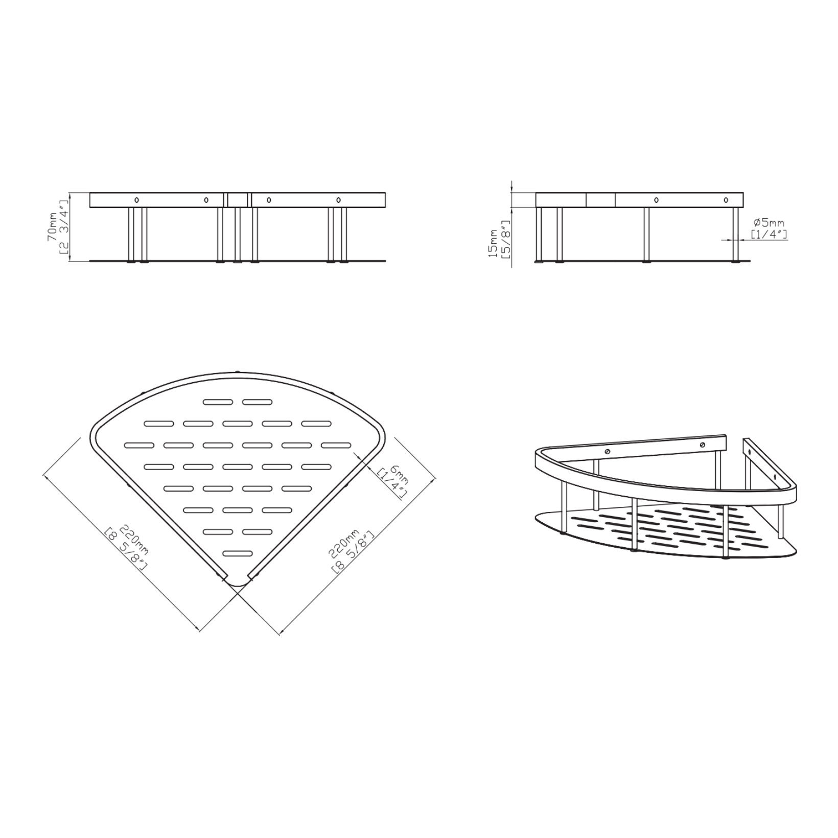 Aloni Uniforma doucherek – hoekmodel – 22x7x22 cm – chroom – roestvrij staal