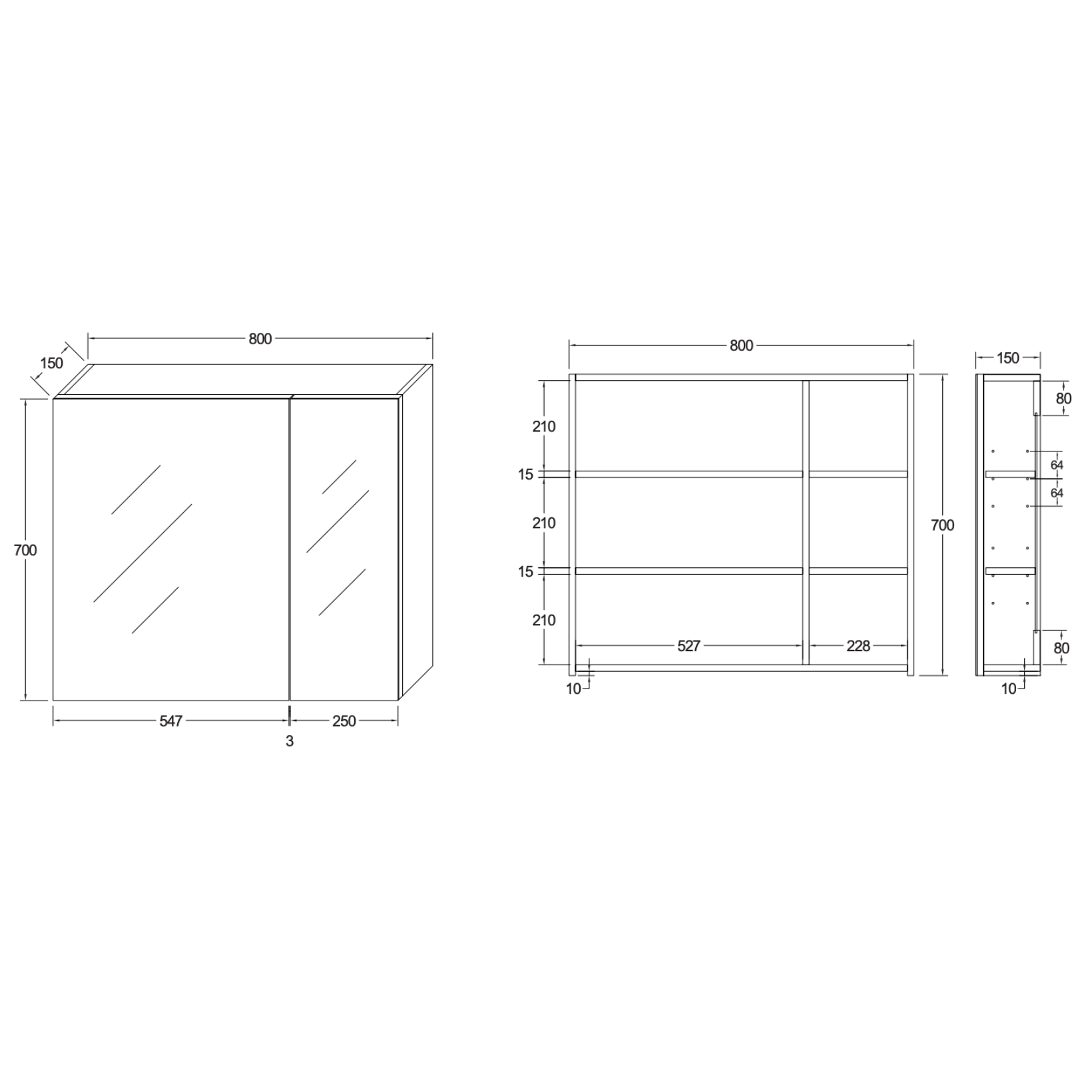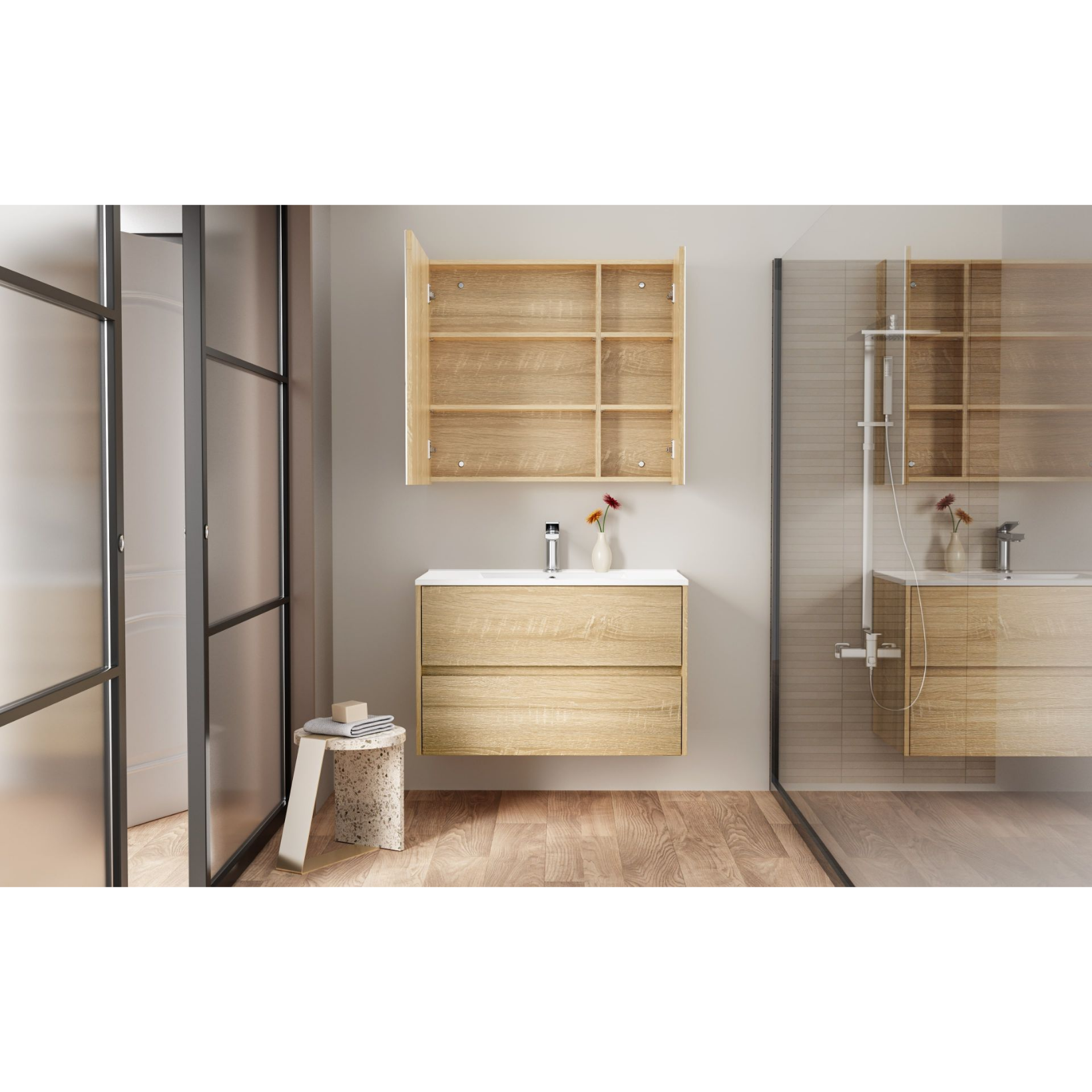 HAYAT spiegelkast – 2 asymmetrische enkelzijdige spiegeldeuren – 80x70x15 cm – Eik