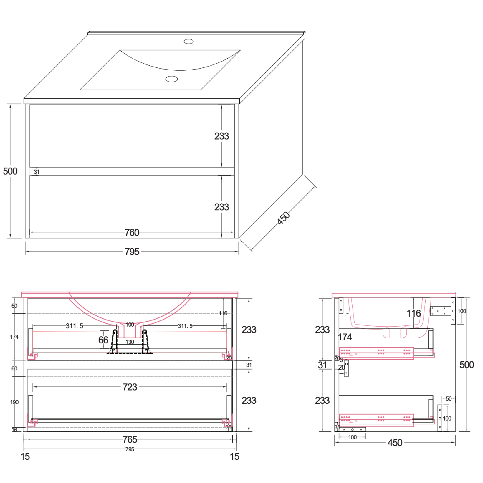 ALONI HAYAT wastafelonderkast – 79,5x50x45 cm – Mat zwart – Greeploos & softclose