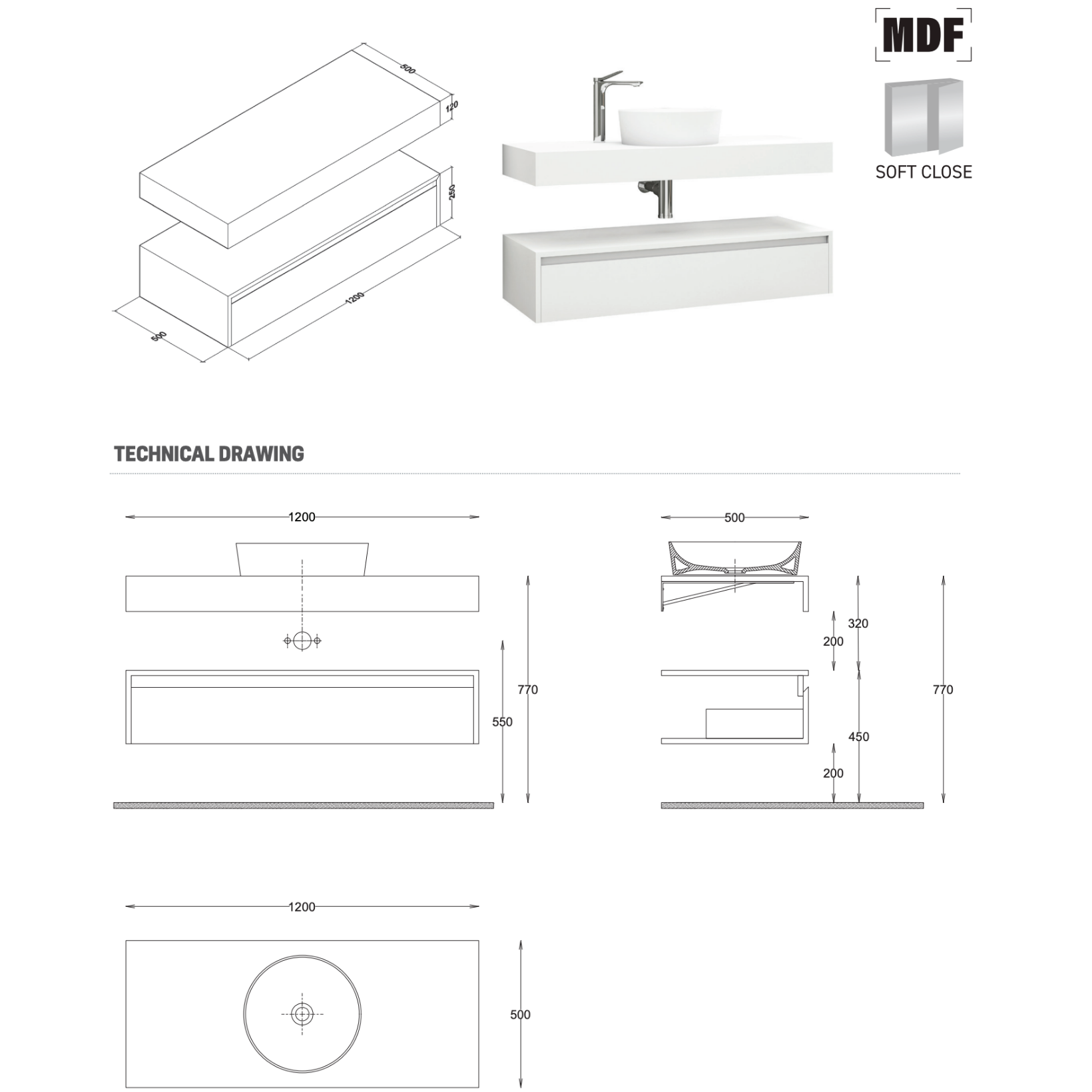 ALONI LINA wastafelonderkast – 120 cm – Mat wit