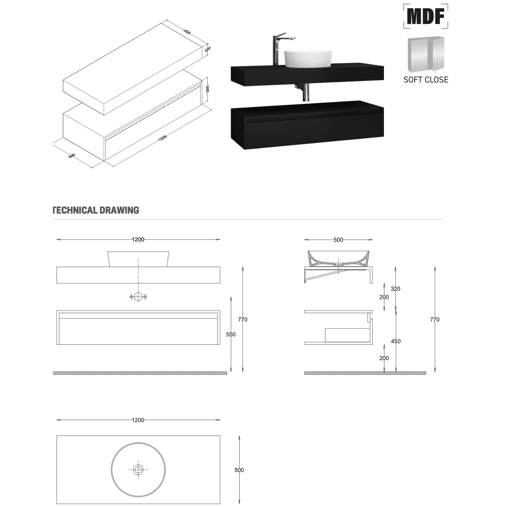 ALONI LINA wastafelonderkast – 120 cm – Mat zwart