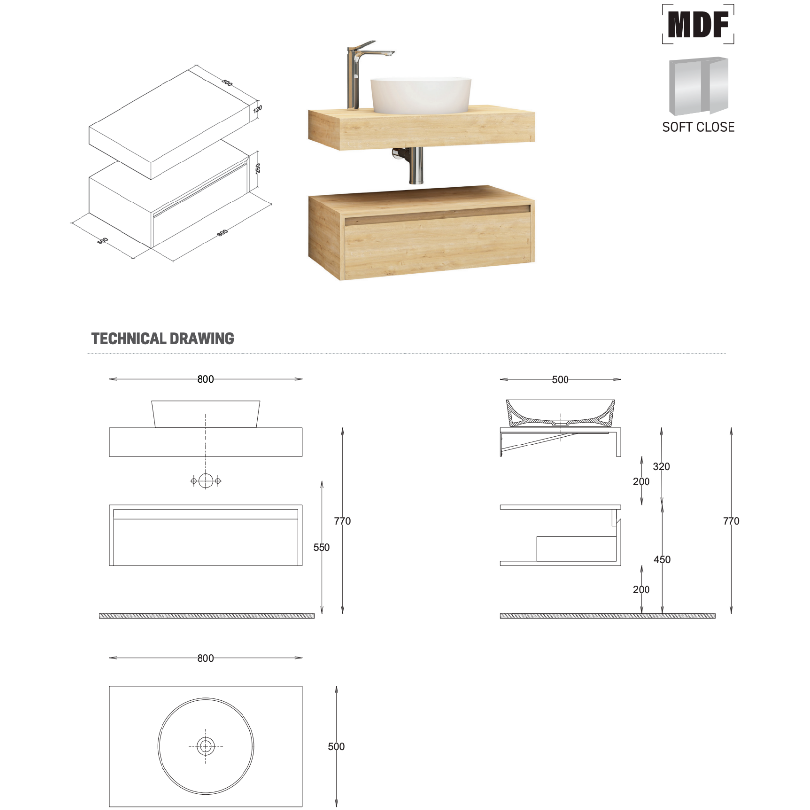 ALONI LINA wastafelonderkast – 80 cm – Eiken