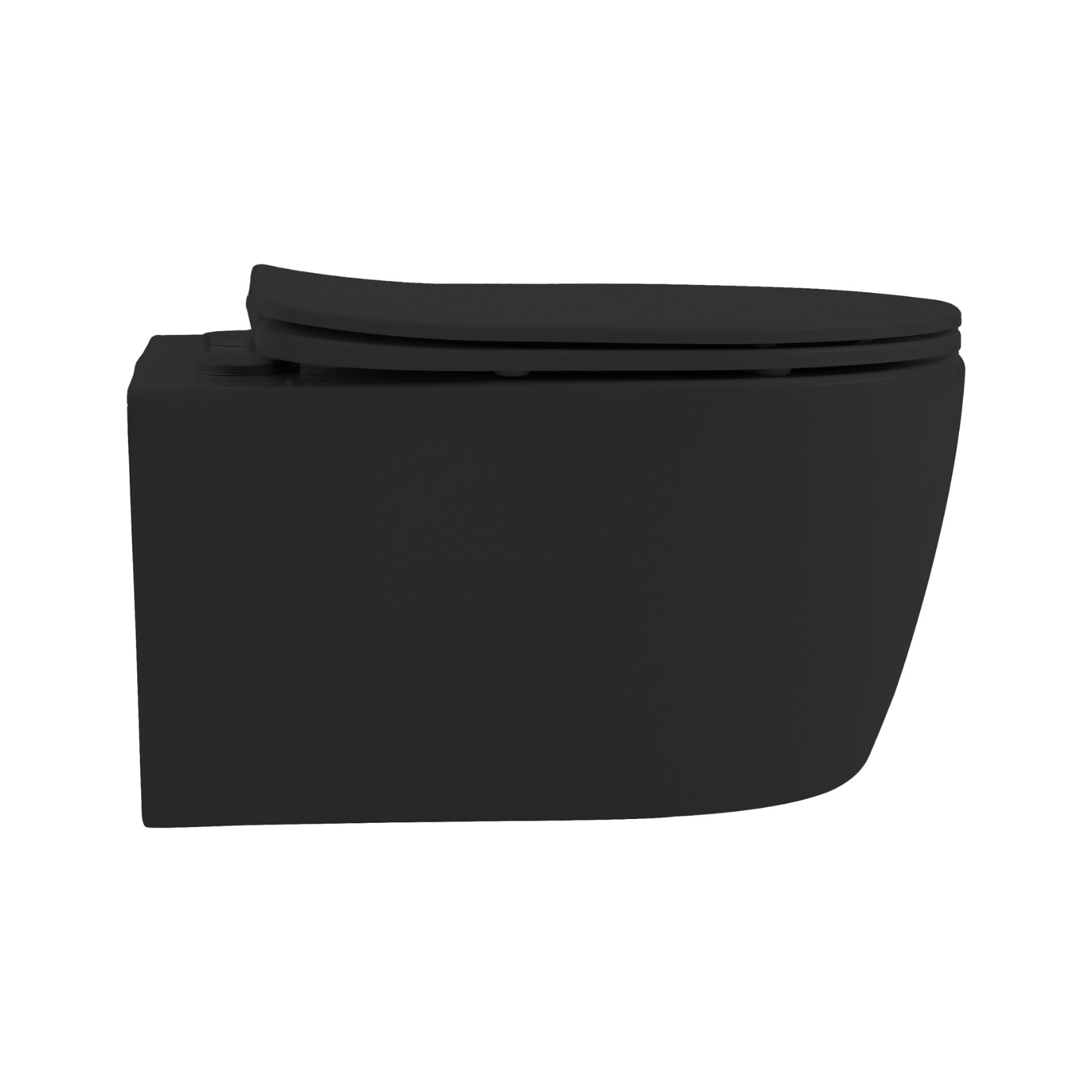 Aloni Pro hangtoilet / ophang WC – randloos – met zitting – compact 49 cm – mat zwart