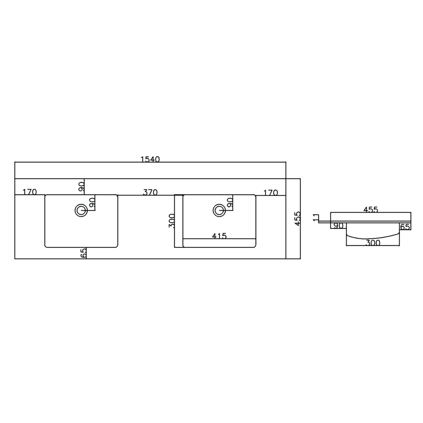 ALONI Solid Surface Dubbele Wastafel – 160 cm – Wit