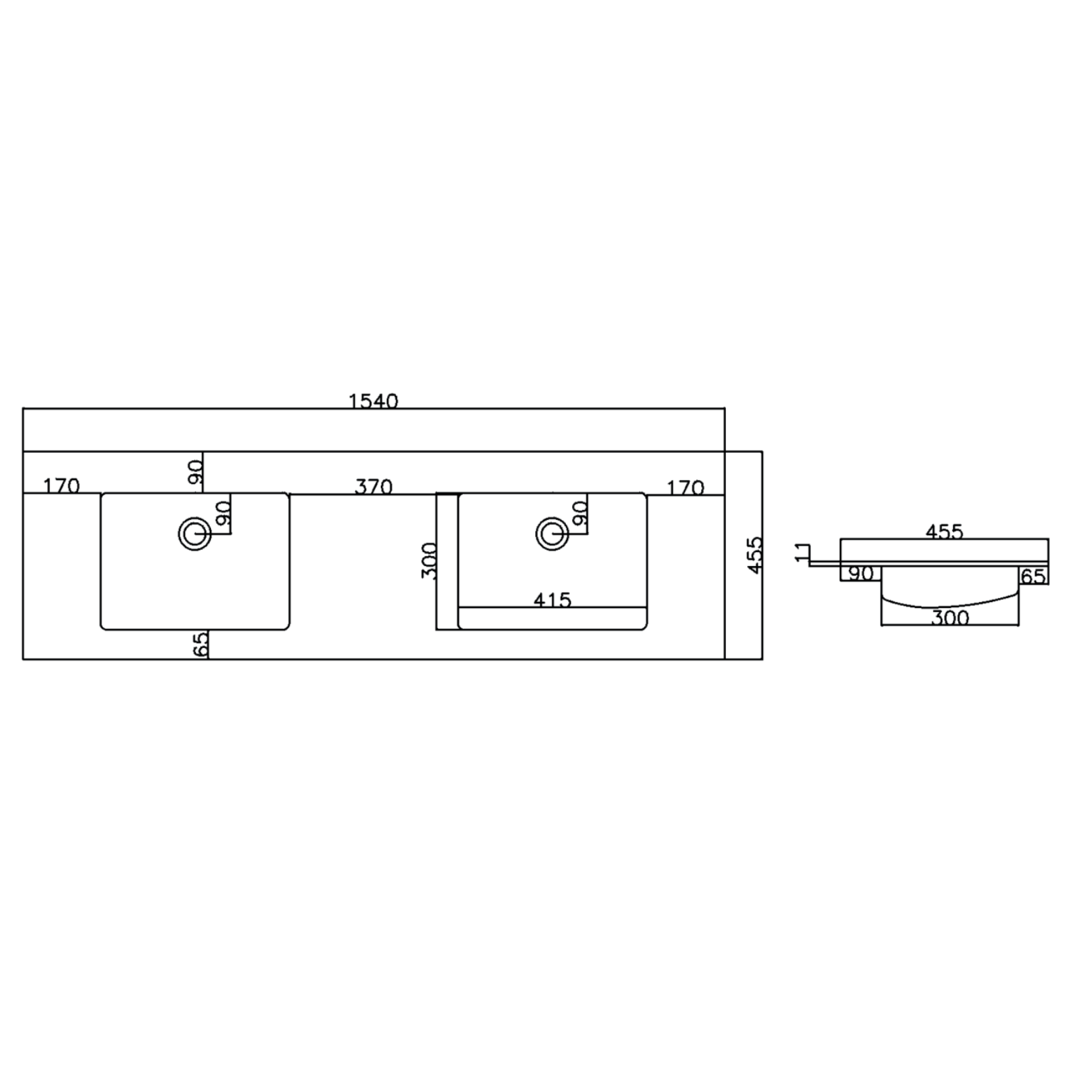 ALONI Solid Surface Dubbele Wastafel – Zonder Kraangat – 160 cm – Wit