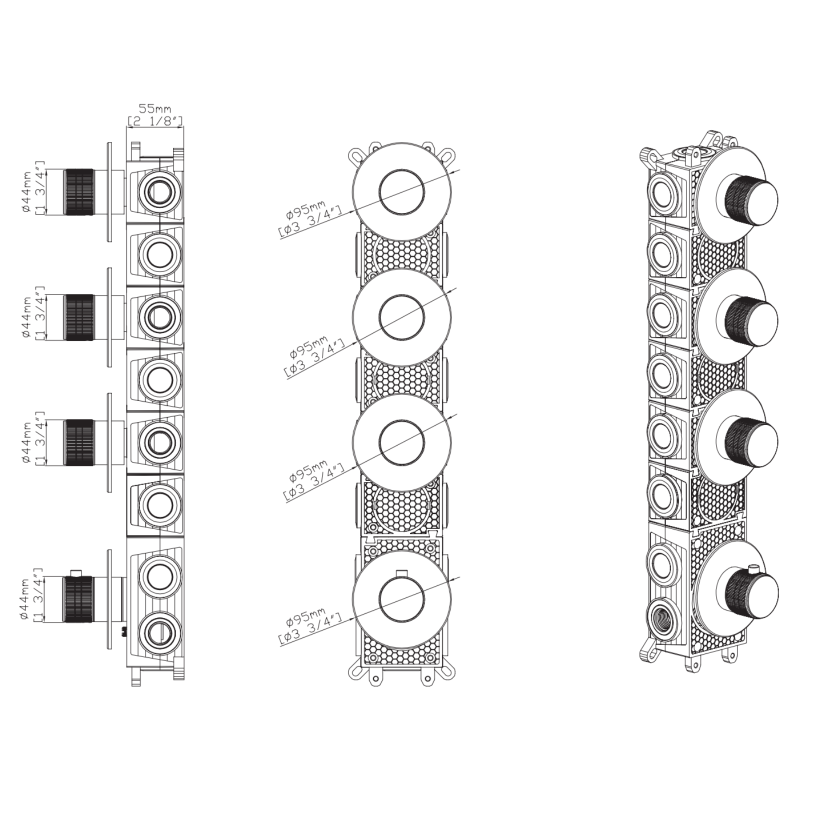 ALONI Stria inbouwbox voor douchemengkraan – 3-weg – thermostatisch – inbouw