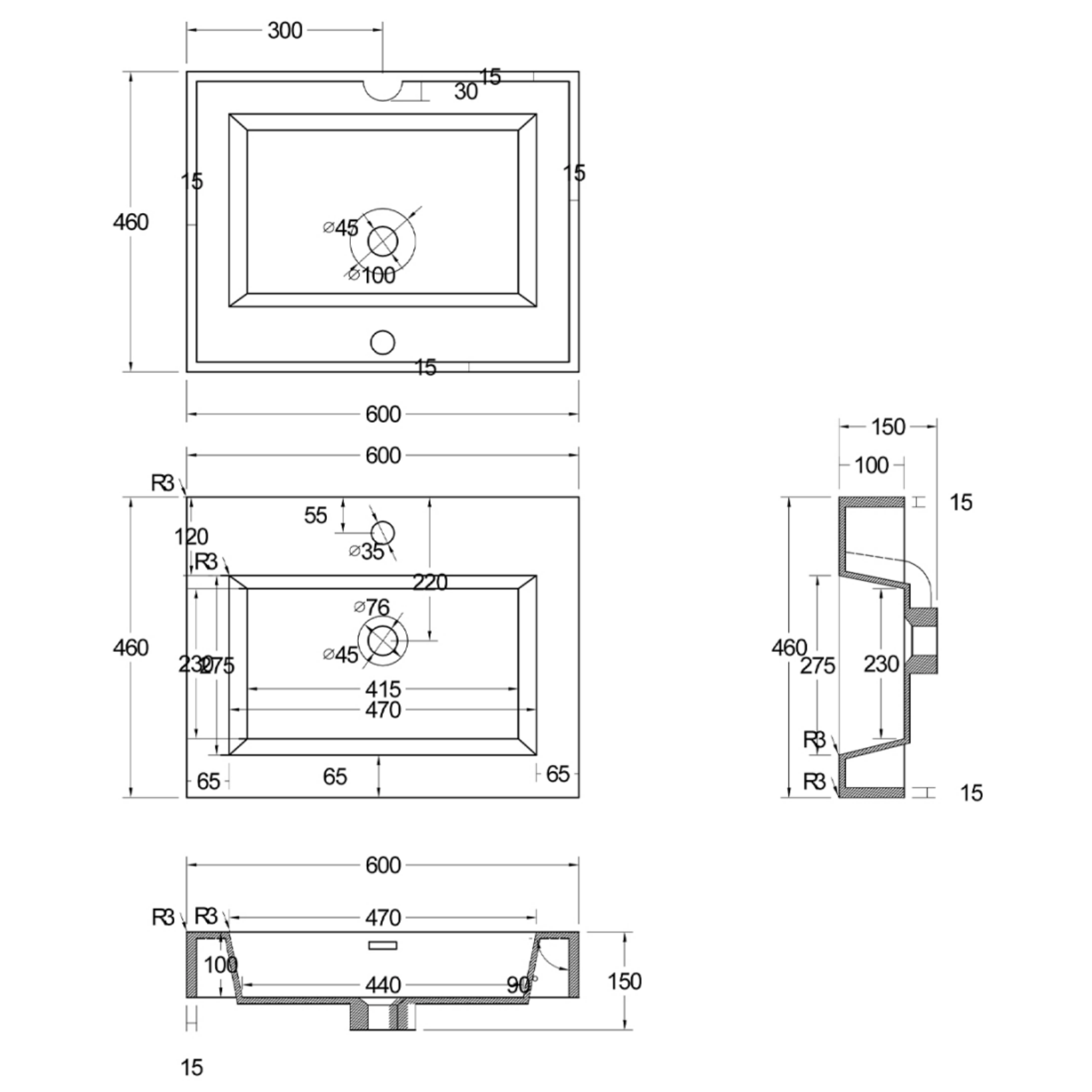 ALONI Wastafel – 60x10x46 cm – Kunstmarmer – Glanzend Wit