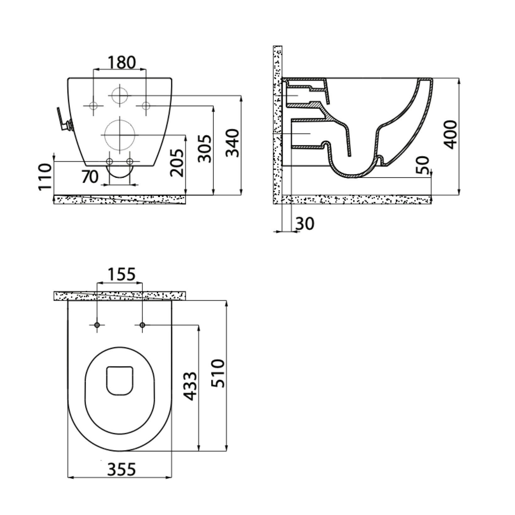 Creavit Rimoff hangtoilet / ophang WC met RVS sproeier (bidet) – koud water – wit