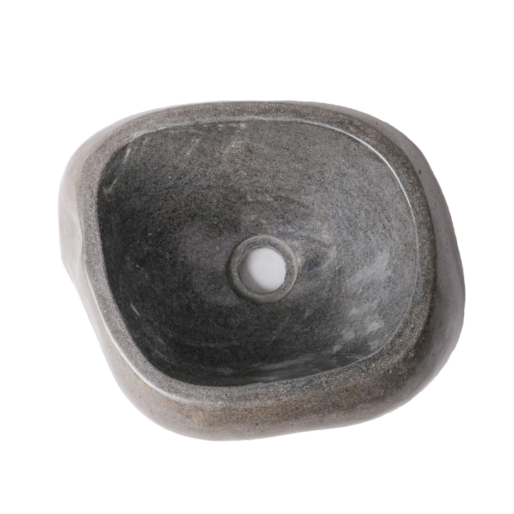 Volledig Gepolijste Waskom van Natuurlijke Riviersteen – Zwart – 30-35x15x1,5 cm