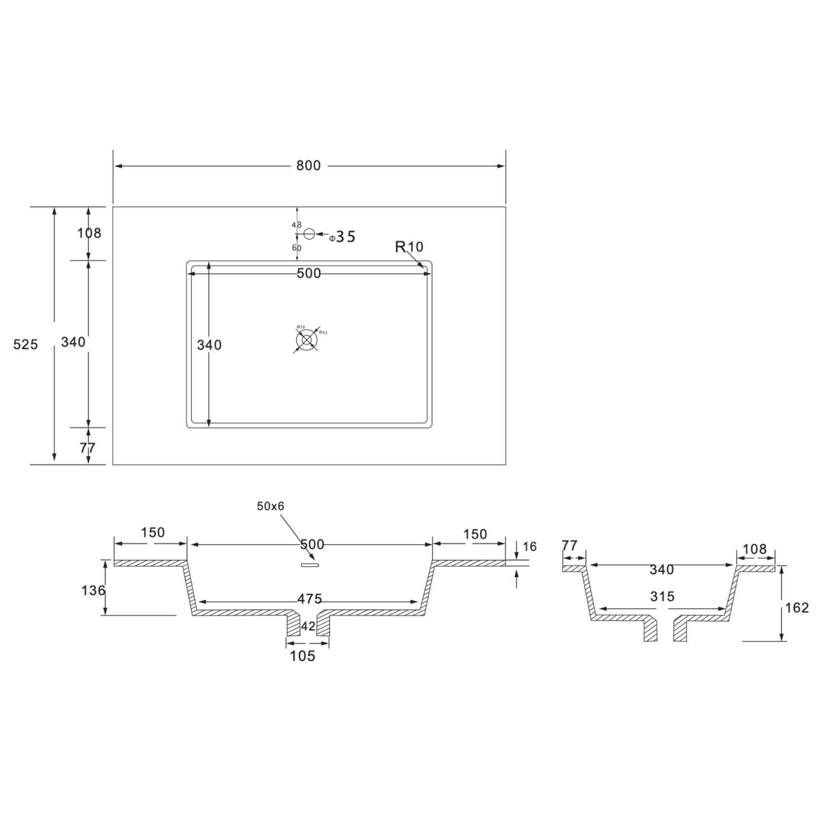 WONDA Square Slim Wastafel – 80x1,6x52,5 cm – Kunstmarmer – Mat Wit