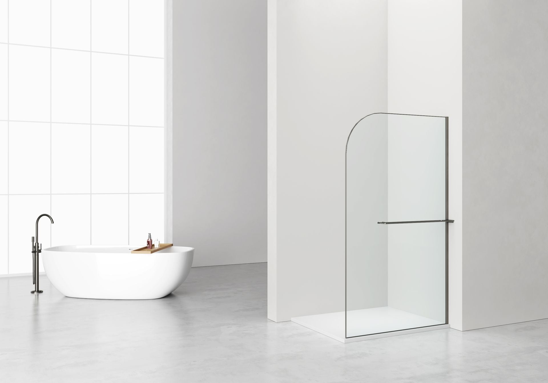 Aloni CURVY Walk-in shower com porta-toalha - Curvo - Vidro de segurança de 8 mm - 120x200 cm - Gunmetal - Anti-calcário - Vidro transparente