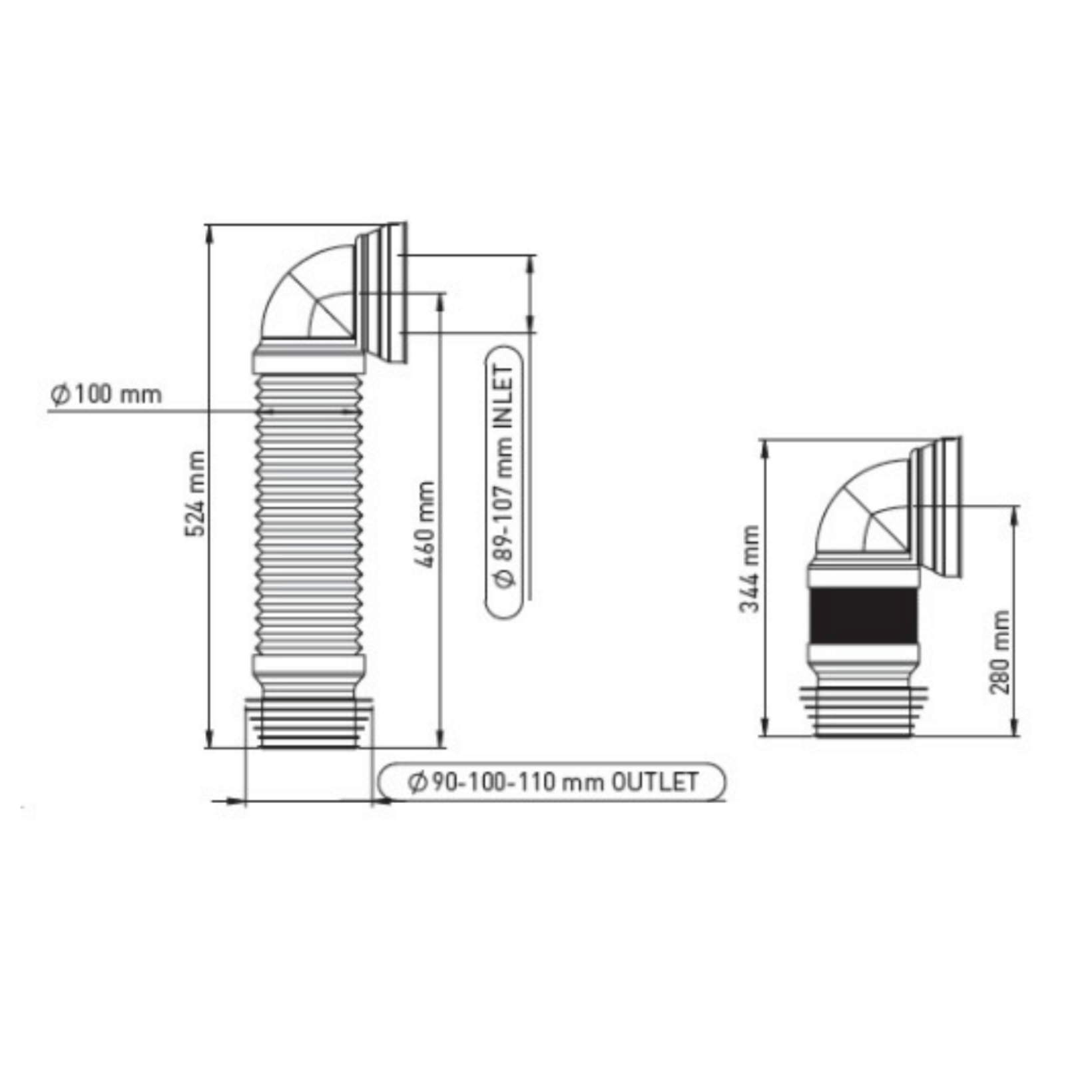 ALONI flexibel WC aansluitstuk – Bocht 90° – Conisch Ø90-110