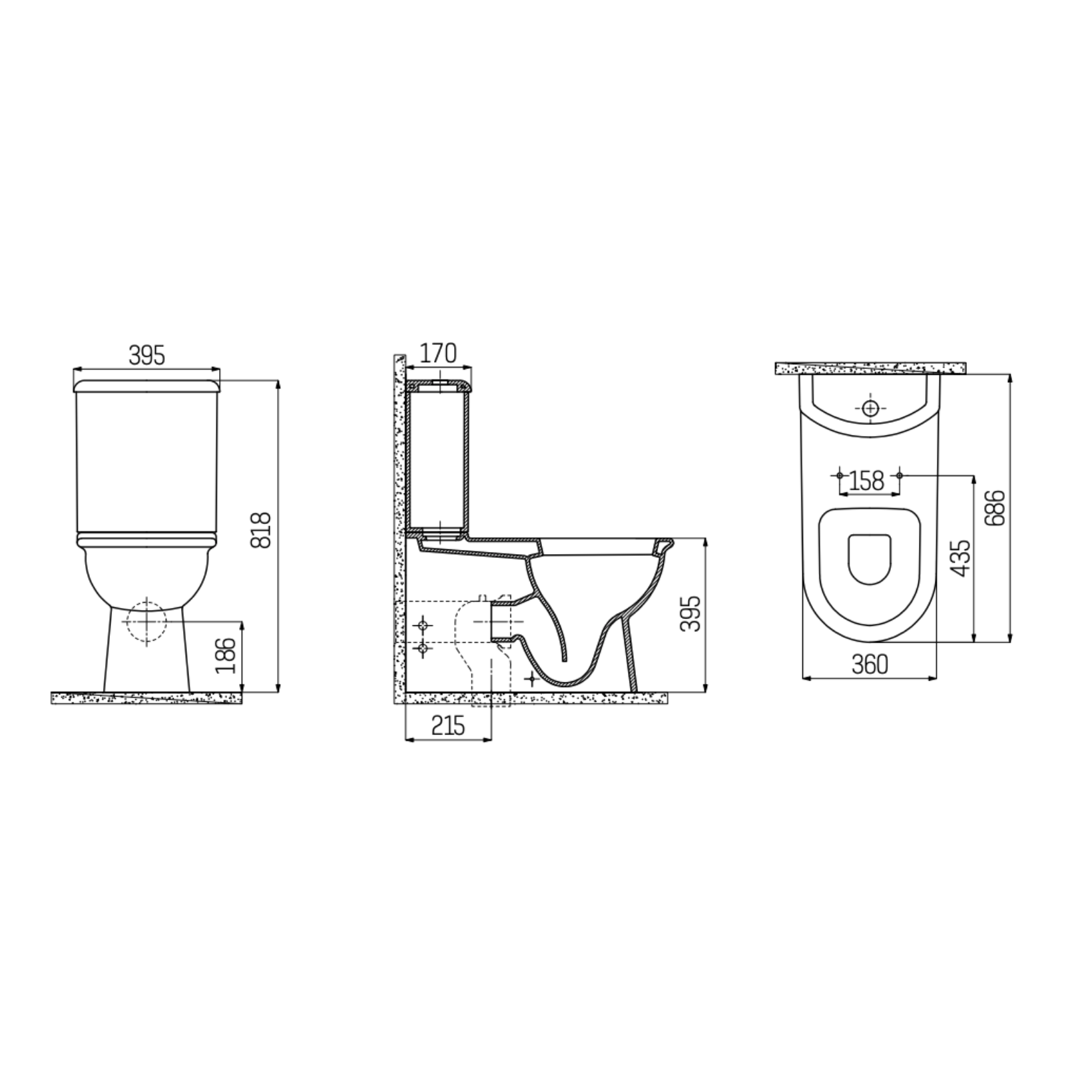 Creavit Selin staand toilet / vloertoilet – muur/onder-uitgang – wit